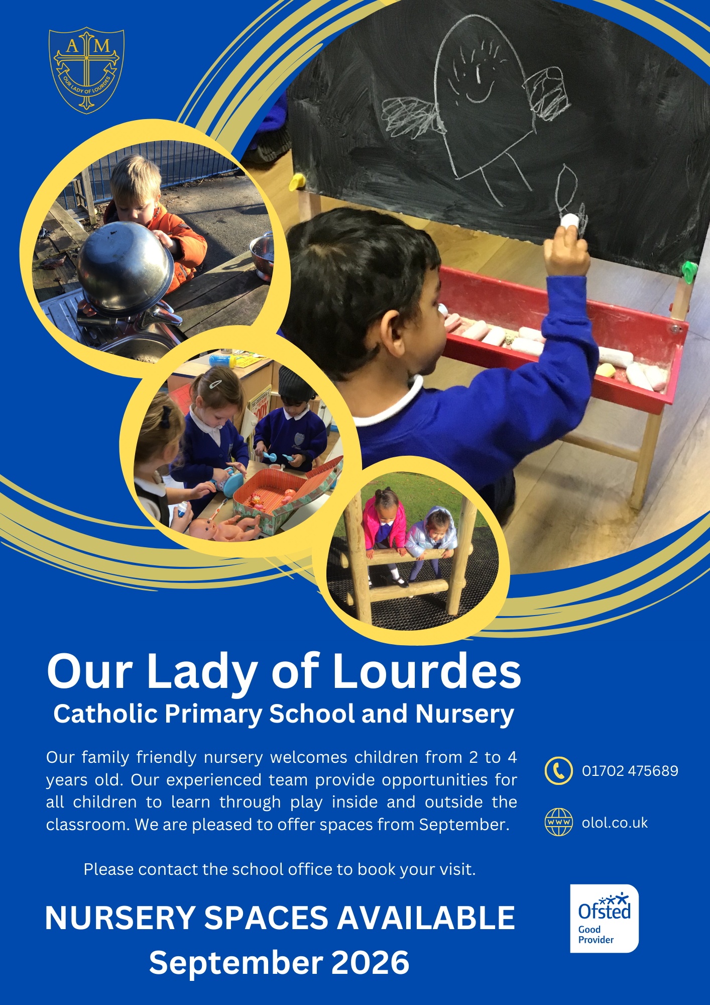 Our Lady of Lourdes Catholic Primary School is a voluntary-aided school in the Diocese of Brentwood and seeks, at all times, to be a witness to Jesus Christ.